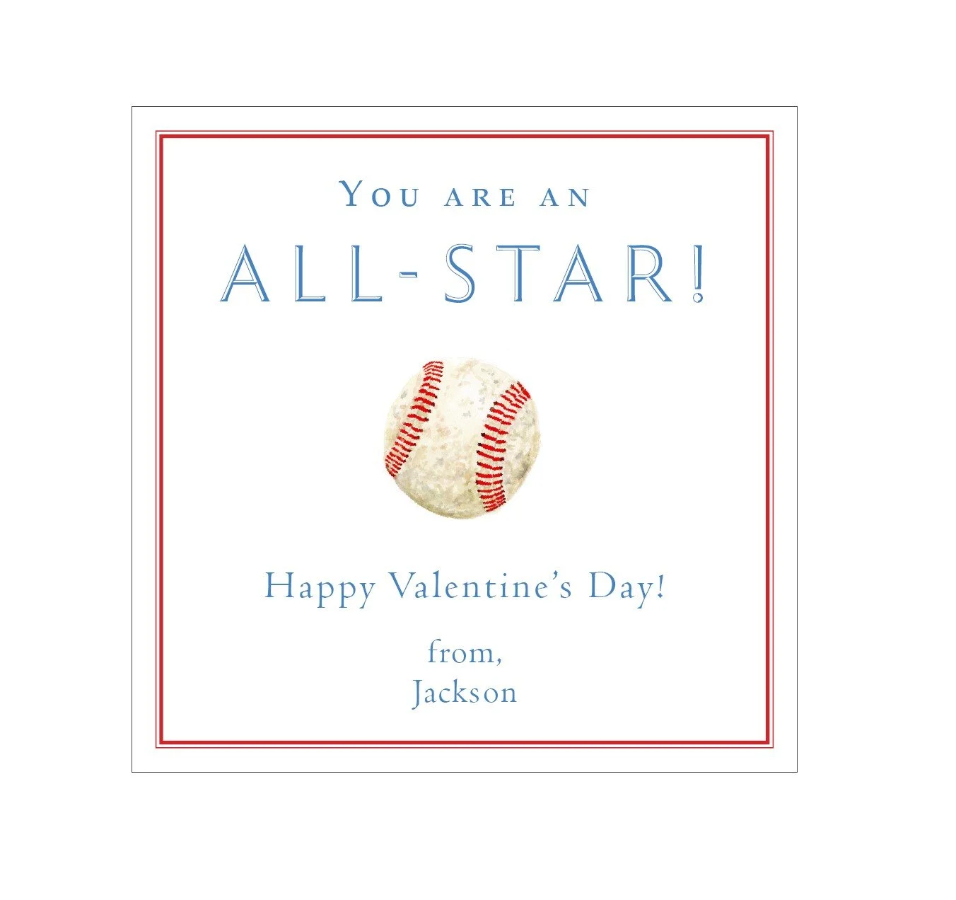 Shop › Baseball Valentines Image 1 of 1 Baseball Valentines $24.00 Set of 203.5 x 3.5 inches100lb paper Quantity: Add To Cart Added! Set of 203.5 x 3.5 inches100lb paper You Might Also Like Boat Valentines $24.00 Blue Poppin' Valentines $24.00 Smitten Valentines $24.00 Sunglasses Valentines $24.00 Tennis Match Valentines $24.00